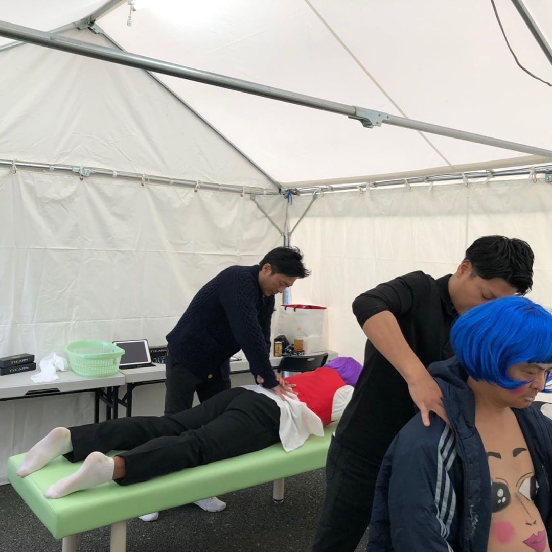 その特大イベントでアーティストの方や、芸人さん、プロスポーツ選手の体をバックヤードにて体の全般をケア致しました。