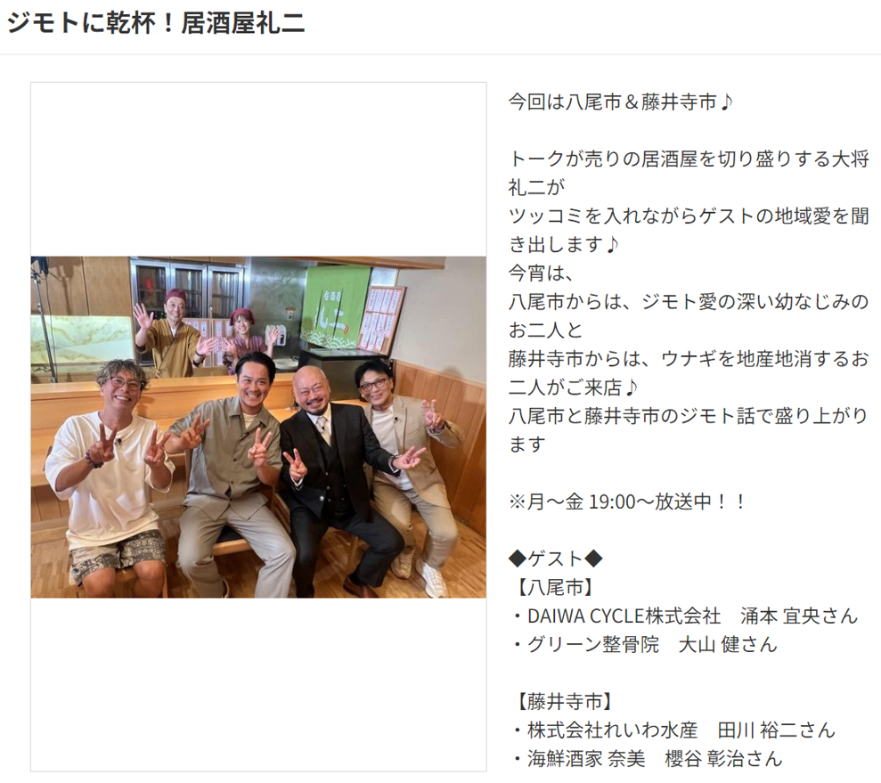 JCOMチャンネル「居酒屋礼二に大山院長が出演させて頂きました。
